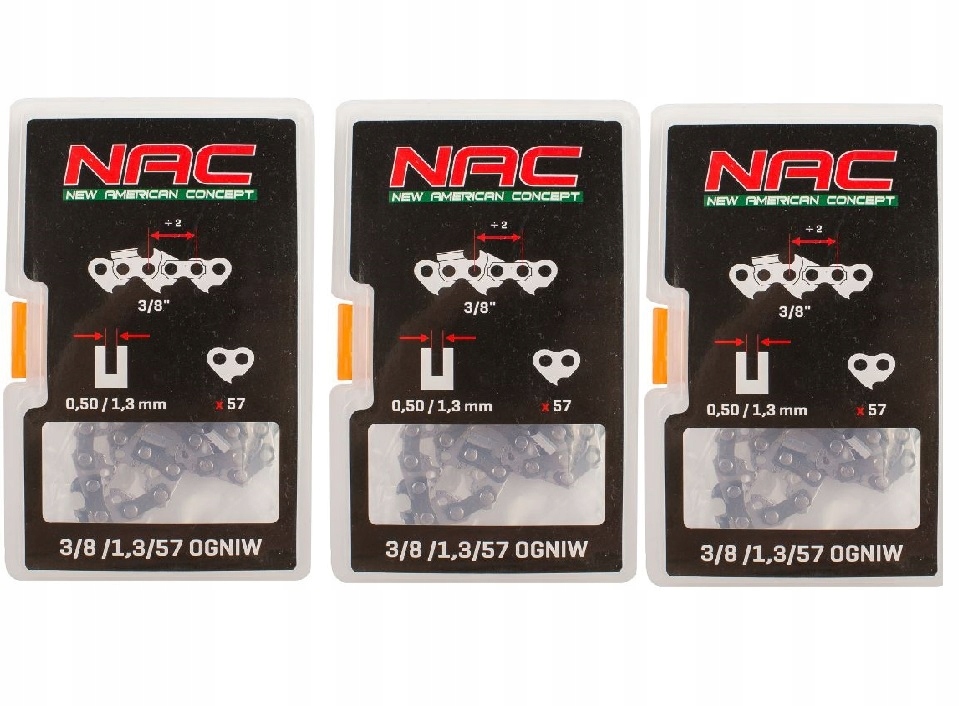 3x Oryginalny łańcuch firmy NAC 16' 3/8 / 1,3mm 57 ogniw