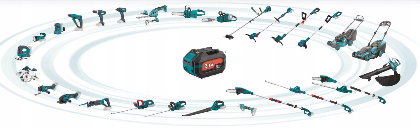 Urządzenie z linii NAC AKUMULTISYSTEM 20V: to linia narzędzi akumulatorowych NAC, które zasilane są tą samą baterią.
