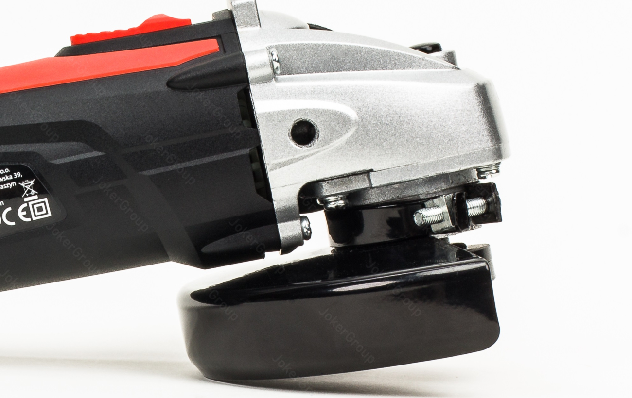 W przedniej części głowicy szlifierki zamocowana jest ruchoma osłona ochronna tarczy szlifierskiej z możliwością szybkiej zmiany tarczy.