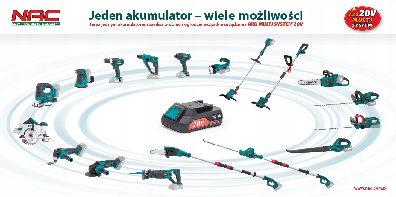 Urządzenie zasilane jest napięciem 20 V z baterii litowo jonowej o dużej pojemności 2000 mAh ze wskaźnikiem naładowania. Dzięki zastosowaniu technologii litowo-jonowej baterie nie mają efektu pamięci (można je w dowolnym czasie doładowywać). Krótki czas ładowania akumulatorów – tylko 1 godzina.