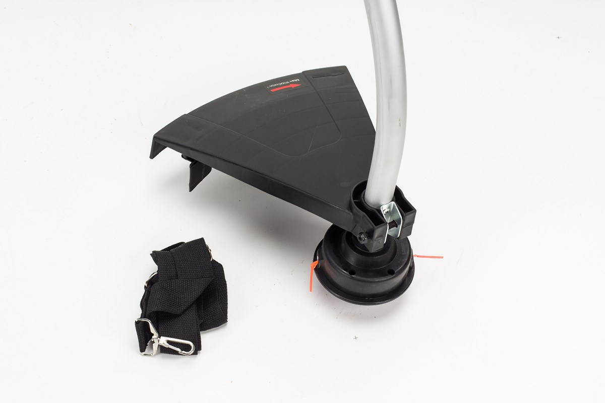 Składany wał napędowy sprawia, że przechowywanie i transportowanie urządzenia jest bardzo proste, gdyż zajmuje mało miejsca. W zestawie znajduję się pas do przewieszenia przez ramię.