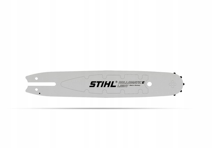 Prowadnica o lekkiej konstrukcji zbudowana z trzech płyt stalowych wydrążonych na dużej powierzchni i zespawanych elektrycznie. Wolne przestrzenie wypełnione są poliamidem zbrojonym włóknami szklanymi. W porównaniu z trzyczęściowymi prowadnicami “Standard“ prowadnice Rollomatic E Light są wyraźnie lżejsze. Oszczędności w zakresie ciężaru wynoszą 25% przy prowadnicach o krawędziach tnących o długości 30 cm oraz 30% przy krawędziach tnących o długości 40 cm.