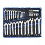 25 kluczy płasko-oczkowych o rozmiarach: 6, 7, 8, 9, 10, 11, 12, 13, 14, 15, 16, 17, 18, 19, 20, 21, 22, 23, 24, 25, 26, 27, 28, 30, 32 mm