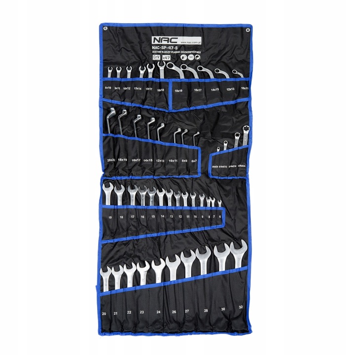 Zestaw kluczy płasko-oczkowych NAC składa się z 47 kluczy. Różnorodność rozmiarów oraz rodzajów kluczy w zestawie pozwala dopasować klucz do swoich potrzeb oraz wykonywania różnych zadań. Specjalny kształt oczka i klucza pozwala na odkręcenie śrub w trudno dostępnych miejscach.