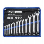 Zestaw kluczy płasko-oczkowych NAC składa się z 12 kluczy. Różnorodność rozmiarów w zestawie pozwala dopasować klucz do swoich potrzeb oraz wykonywania różnych zadań.